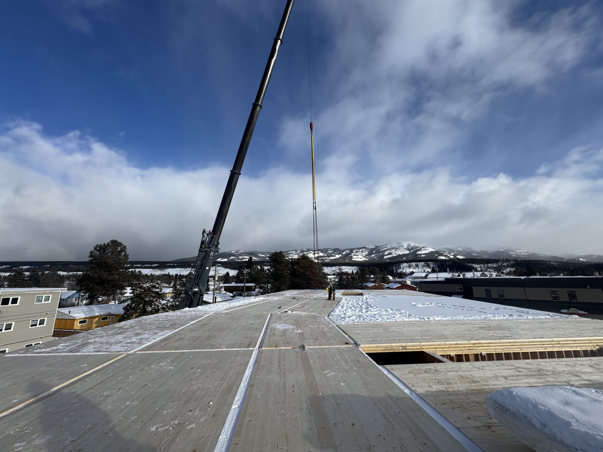 Watching The Summit rise in Riverdale, Whitehorse! The laminated floor beams are going in — a major milestone in bringing this contemporary condo to life. From strong structural moments like these to future homes with incredible finishes and mountain views, it’s exciting to see the progress every step of the way.